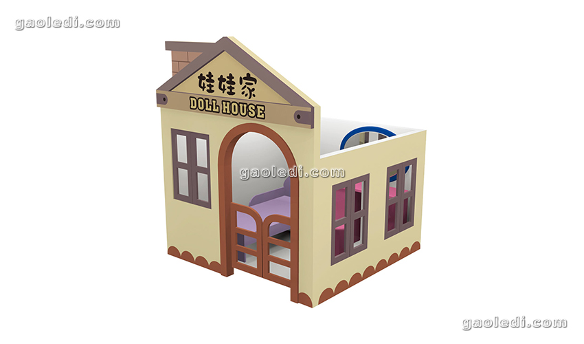 2、造型新穎 幼兒娃娃家以人的生活世界為設計原型,相當于一個微縮的生活環境。在娃娃家中有廚房、客廳、臥室、郵局、醫院、美容院、銀行等等生活配套設施,這些都是兒童將來步入社會需要接觸到的東西。逼真形象的環境情景模擬讓兒童在角色扮演和玩樂中認識生活,了解社會。