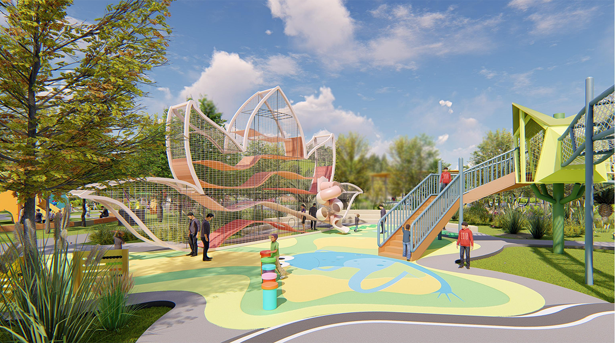 景觀規(guī)劃:景觀手法規(guī)劃場地,形成交互,增強體驗。 流線空間:提取歷史文化,植入到空間,形成空間變化。 設備植入:獨特的造型、肌理、色彩等融入到場景當中。 場景表達:空間串聯,打破常規(guī),塑造特色的主題樂園。 故事串聯:利用故事吸引流量,給運營打造良好的基礎。 產品運營:文化結合設計,讓兒童在游玩的同時了解當地文化。