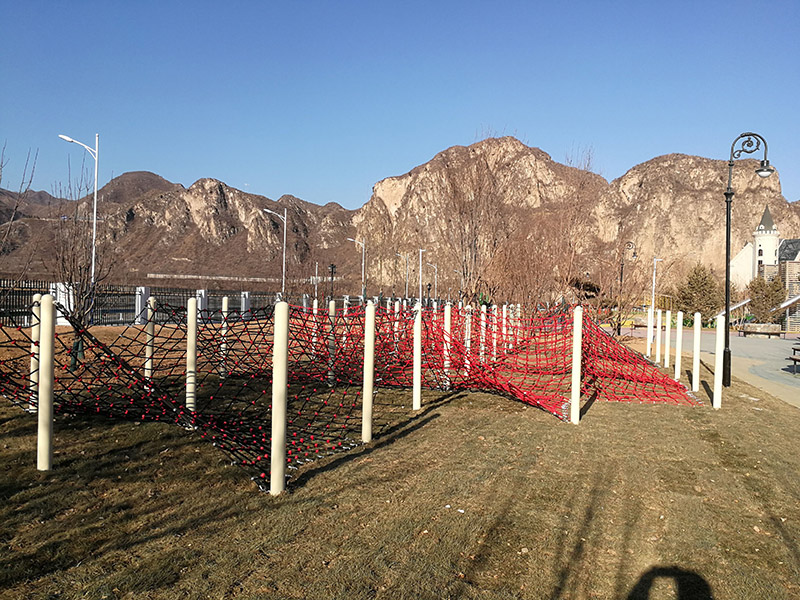 網繩區:采用多組空中網繩橋相連接,架設成空中走廊,主要是鍛煉孩子們的攀爬能力和平衡力,高低不一,錯落有致,讓孩子體驗不同的網繩快樂。