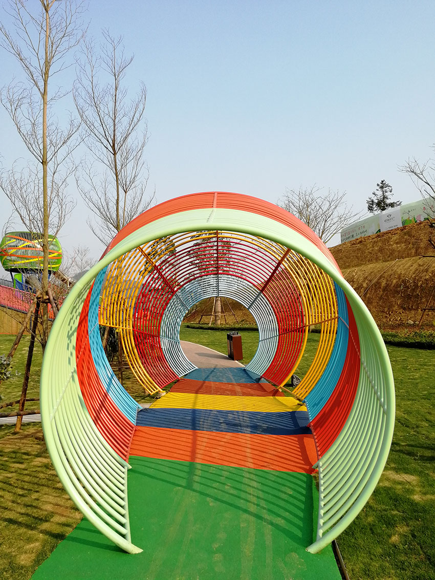 戶外定制長(zhǎng)廊,七彩的顏色符合孩子們的天性,充滿了童真樂趣。