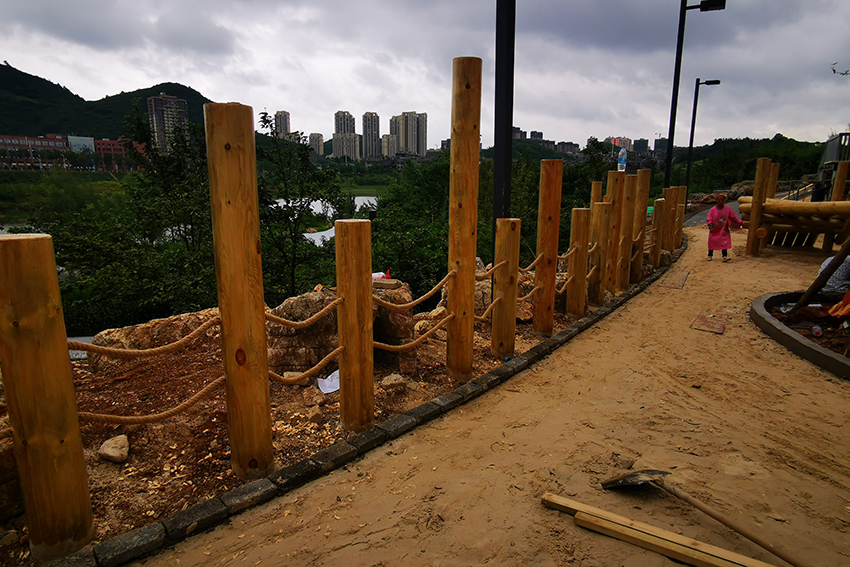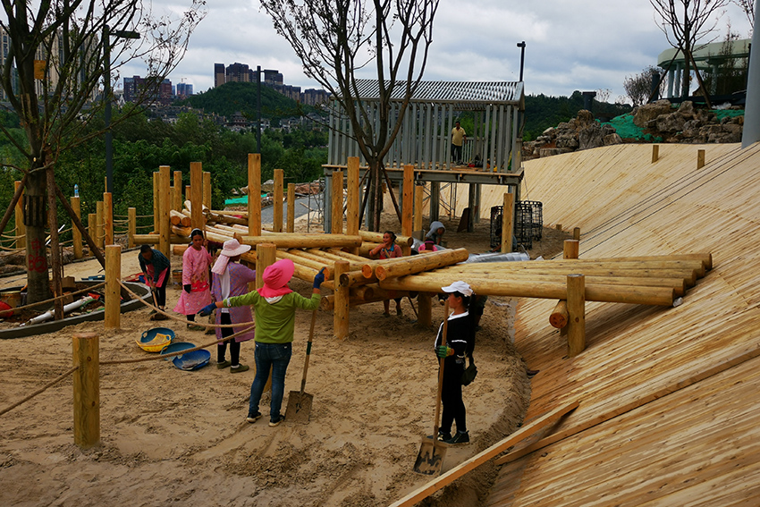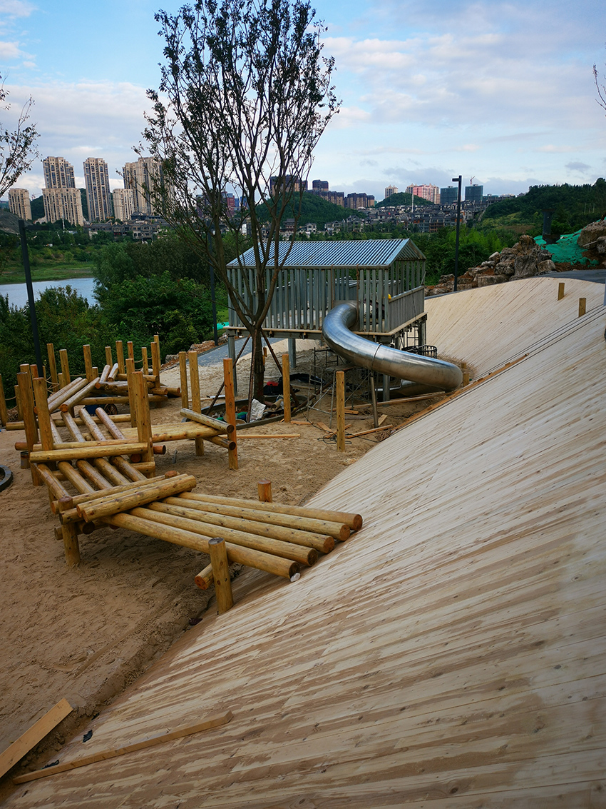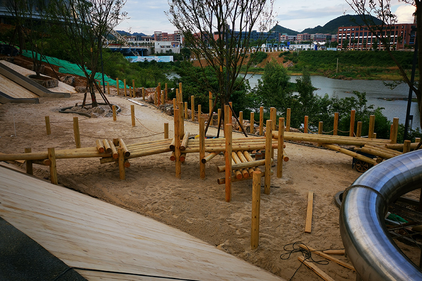 本次施工以不銹鋼景觀滑梯和木質平衡步道等元素為主,通過攀、爬,跑、跳等動作,鍛煉平衡力及四肢協調能力。