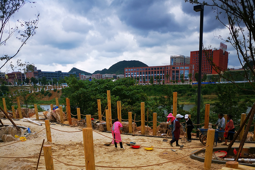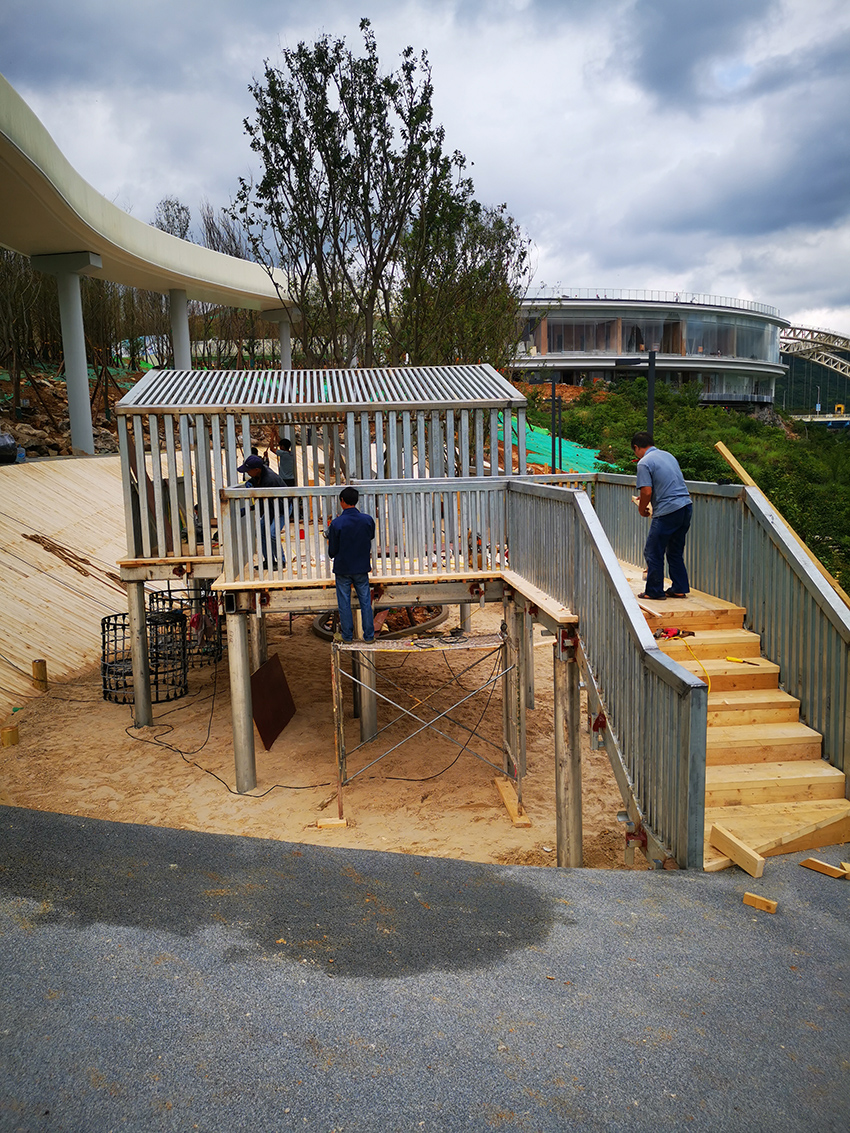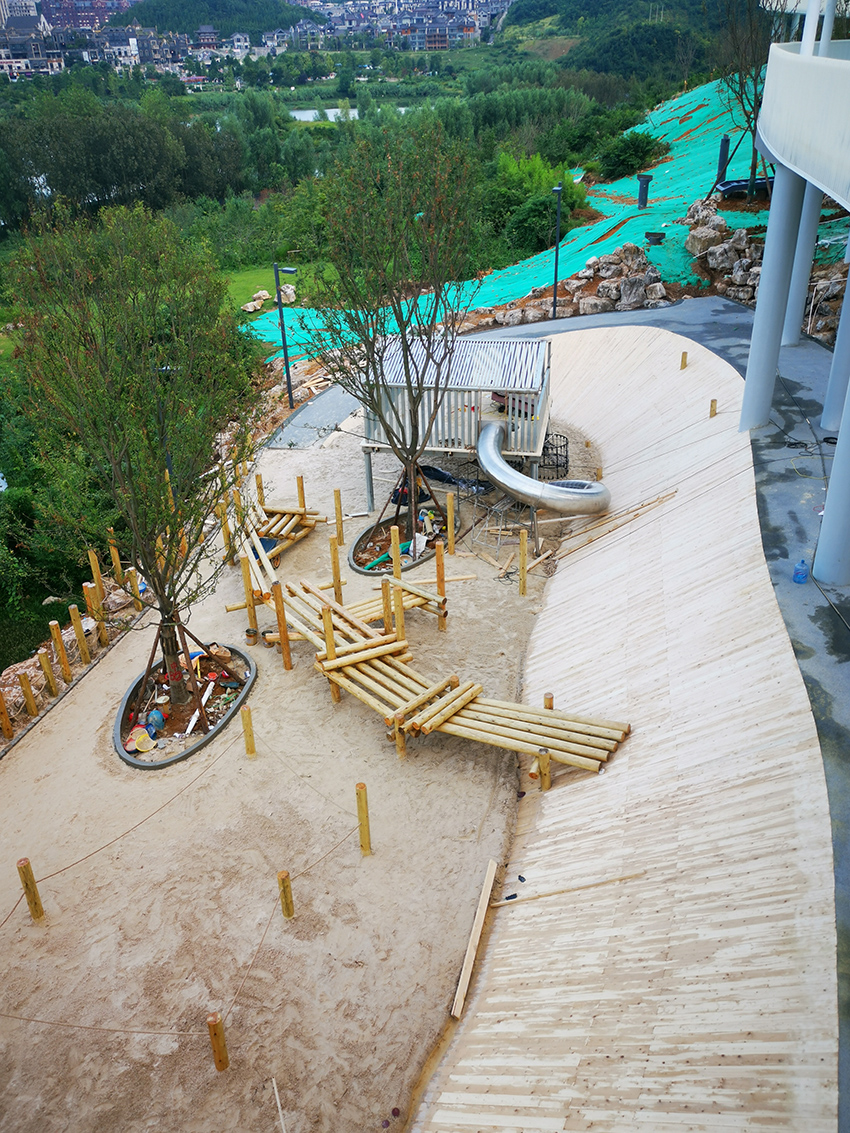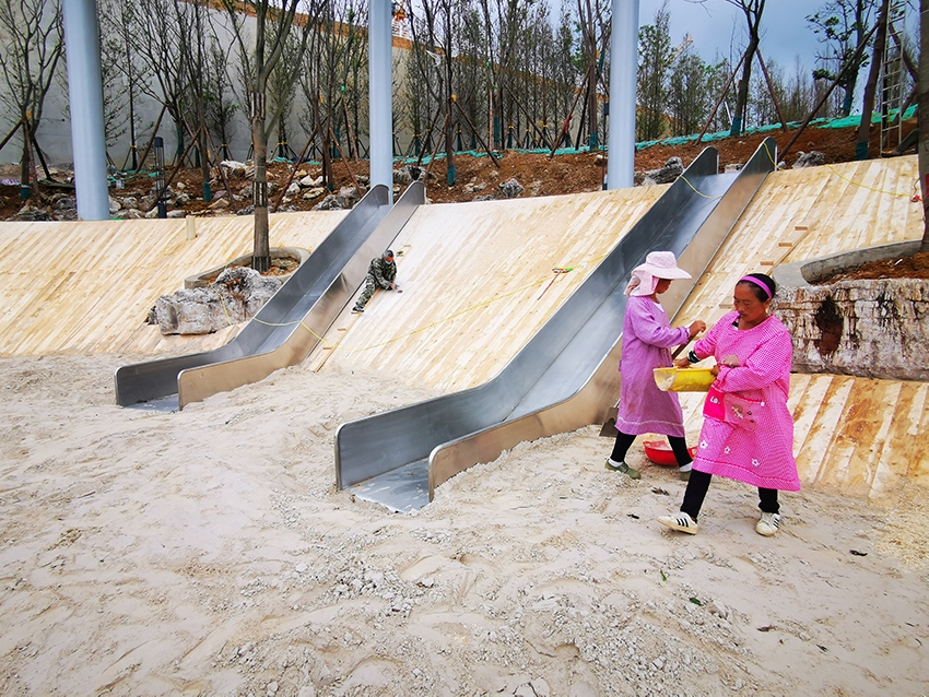 高樂迪本次的施工項目就是坐落在貴陽中鐵云灣,利用不銹鋼景觀滑梯的特點,打造與環境和諧的人為景觀,為孩子們提供玩耍有趣的休閑環境。