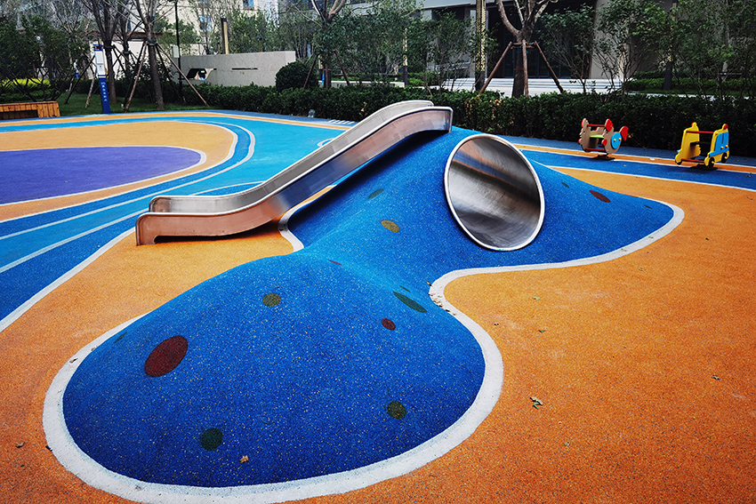 北京亦莊首創(chuàng)遠(yuǎn)洋禧瑞天著社區(qū)的主題樂(lè)園位于社區(qū)內(nèi)的中心廣場(chǎng),廣場(chǎng)采用橡膠地面,擁有微地形樂(lè)園,可以讓孩子鉆爬,也有滑滑梯,還有動(dòng)物造型的小滑梯,秋千架,攀爬架等,可以讓孩子們自有玩耍。